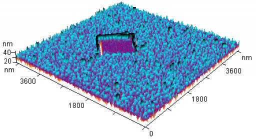 ![]() | Artificial structure created in Langmuir-Blodgett film by scanning probe. LB film was created by "horizontal precipitation" technique using albumin as a film-forming compound. |